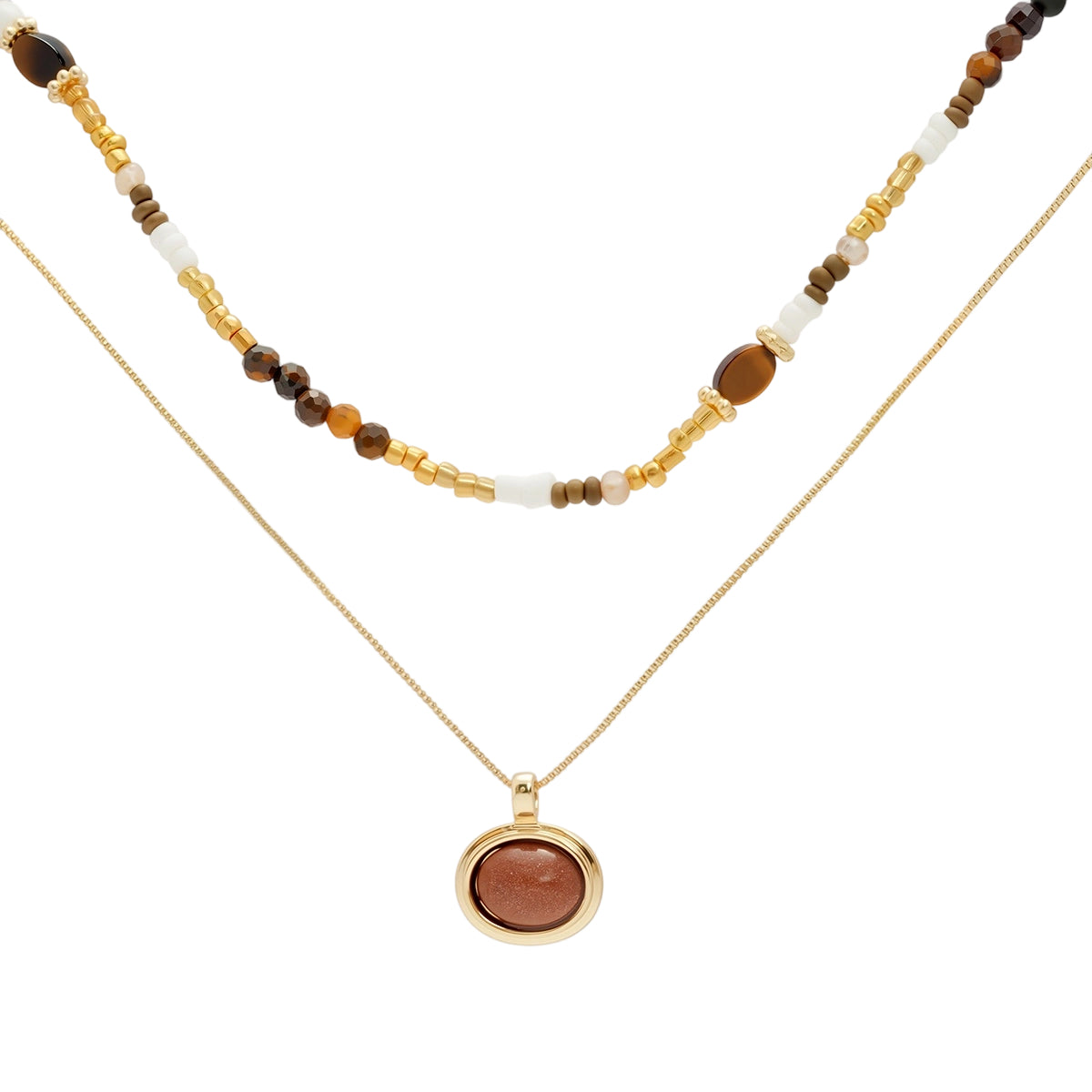 Collier en pierre de protection serti d'œil de tigre et plaqué or 18 carats
